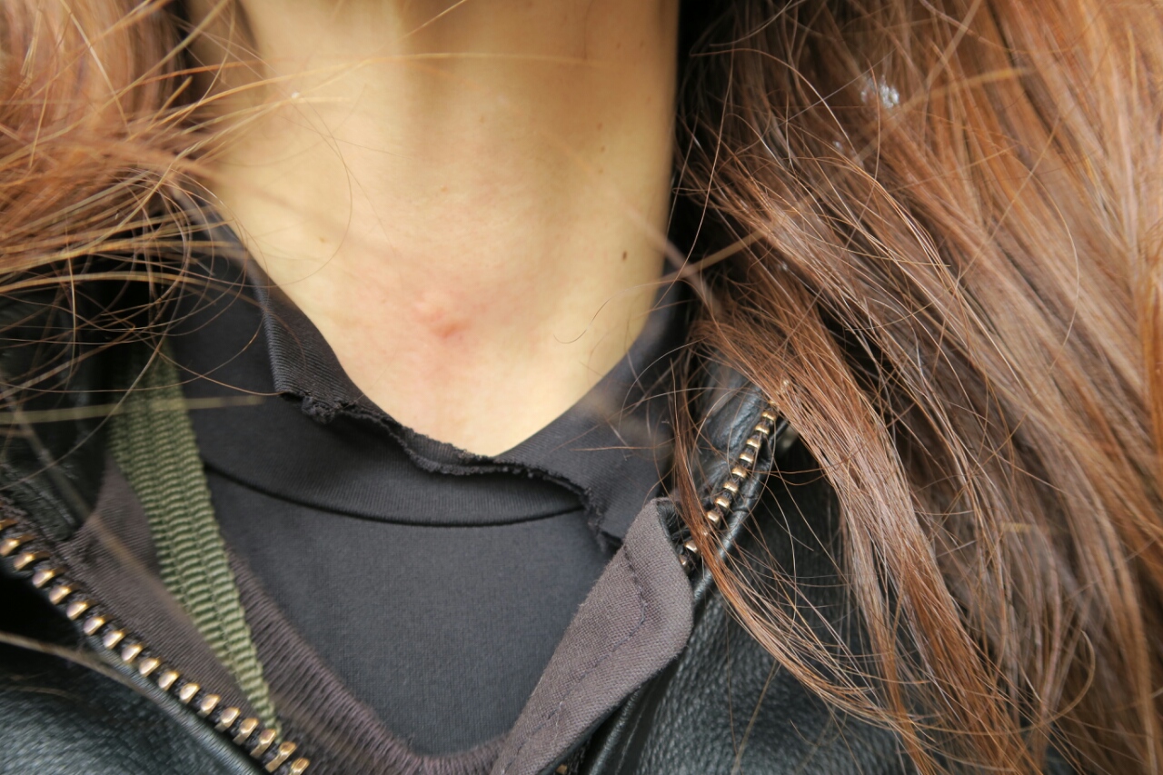 少し暑かったため、ジャケットの前のファスナーを開けていたのですが、そこから蜂が侵入して刺されてしまったようでした。すぐに安全な場所にバイクを停め、確認しましたが、すでに赤くなっていました。