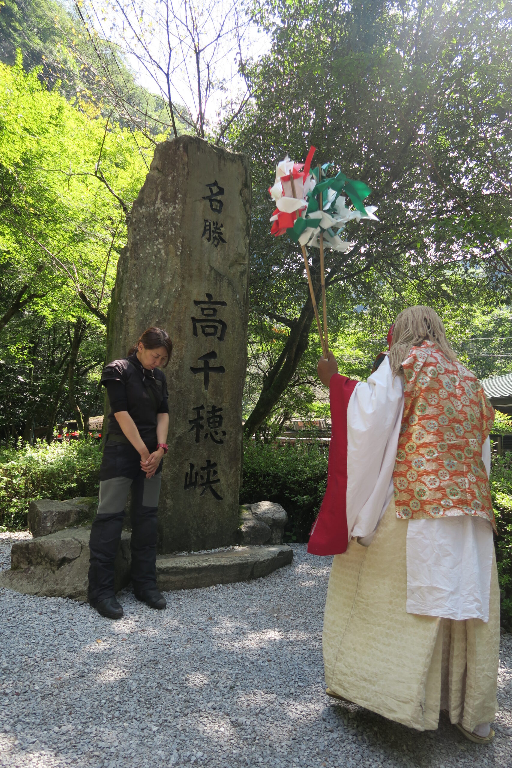 帰りがけ、高千穂峡で一人の青年に出会いました。 今日が初めての「県外ソロツーリング」だという彼。 ピカピカの赤いSUZUKI・GSRに跨る細身の彼は、目がキラキラと輝いていて、見ているこちらまでウキウキしてしまいました。
